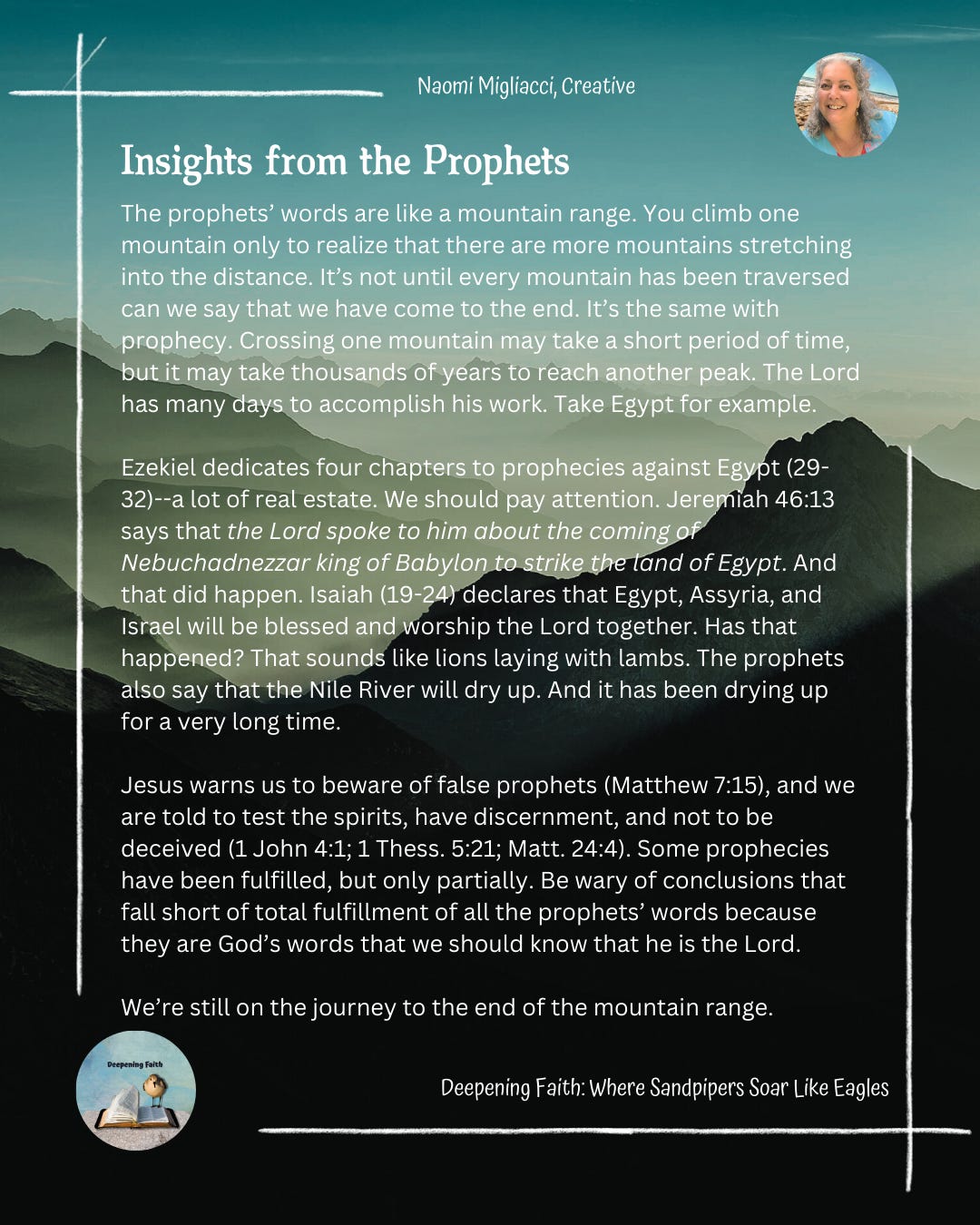 Prophecy InsightsThe prophets warn us. Sometimes the prophecy happens quickly, but sometimes it takes centuries like mountain ranges stretching into millennia. Naomi MigliacciJan 13, 20263ShareDeepening Faith is a reader-supported publication. To receive new posts and support my work, consider becoming a free or paid subscriber.Subscribe